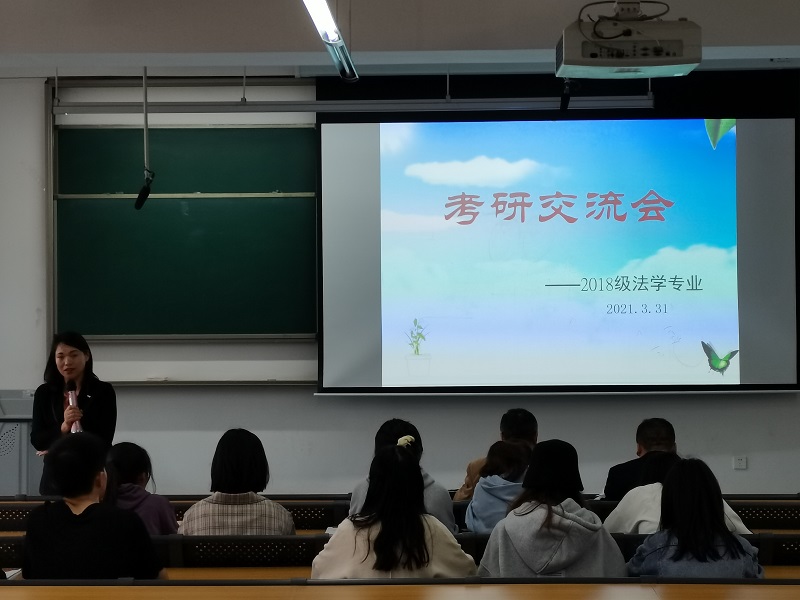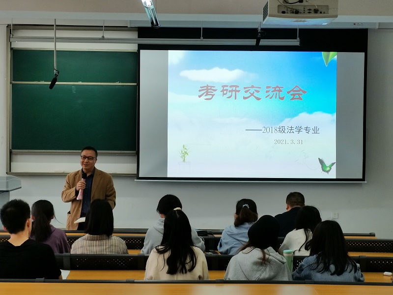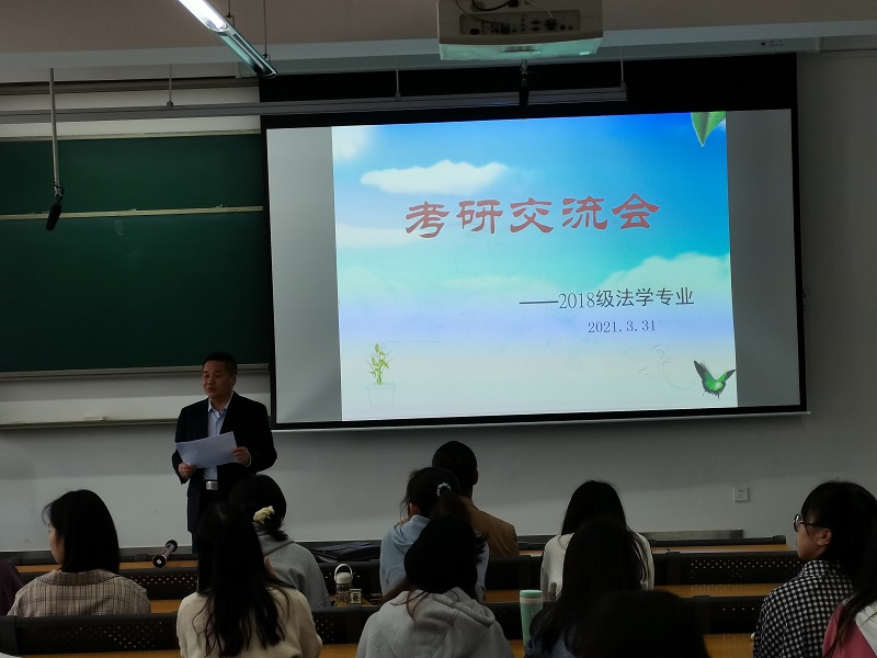 为了进一步加强法学专业同学对考研的认识,解决同学们在考研过程中遇到的问题,增强同学们考研的信心, 3月31 日下午2:00,法学系在宜宾临港校区LA4- 410教室举行了 考研交流会 。参加会议的有法学院党委副书记肖强、法学院院长邓中文、法学系系主任曾凡珂与张少会,以及法学2018级准备考研的同学们。交流会由张少会老师主持。