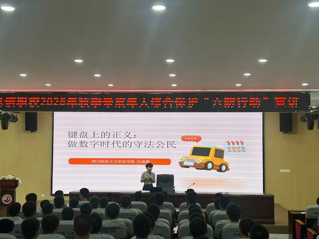 9月30日上午,法学院副院长江凌燕副教授作为自贡市未成年人综合保护“六防行动”宣讲团成员,走进自贡市电子信息职业技术学校,为该校高中生开展“键盘上的正义:做数字时代的守法公民”主题宣讲,精准契合“六防”中“防未成年人违法犯罪”的核心方向,为当地未成年人保护注入专业法学力量。