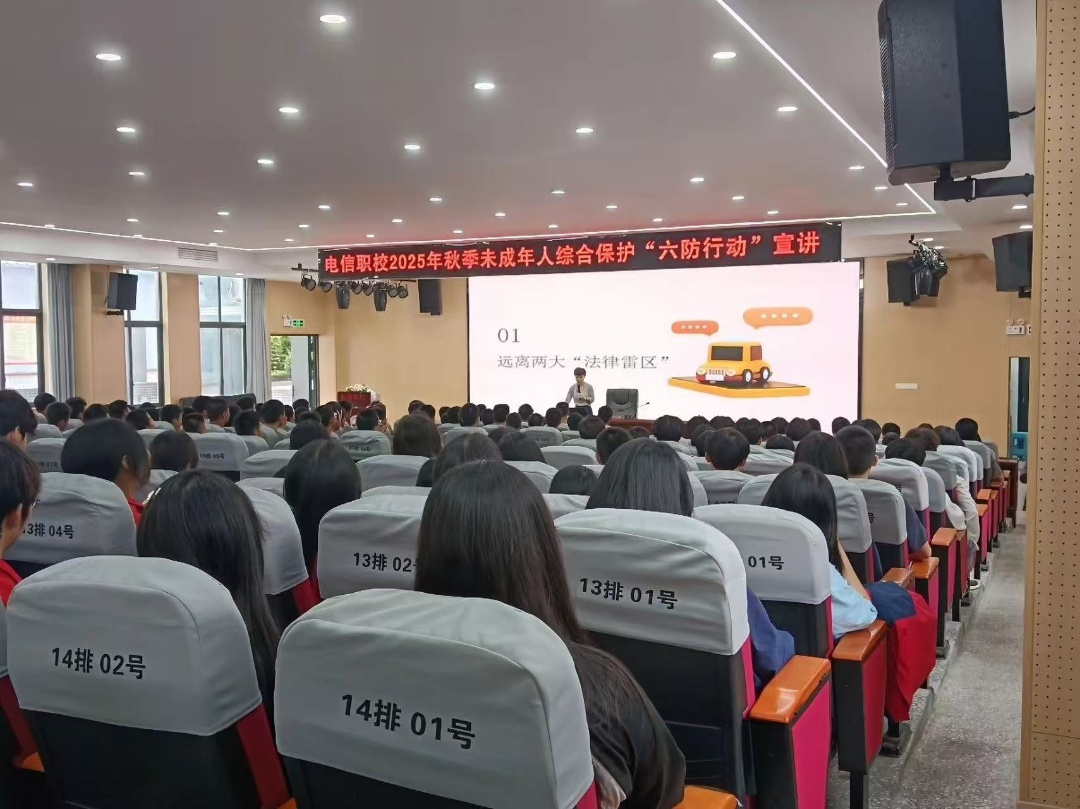 宣讲中,江老师紧扣自贡“六防行动”地域化防护需求,结合电信职校学生专业特色与数字时代背景,通过6个贴合未成年人生活场景的案例,重点解读帮信罪、网络侮辱诽谤等与青少年密切相关的违法风险。针对“防未成年人违法犯罪”,引导学生认清技术滥用、冲动行事可能触碰的法律红线;呼应“六防”体系中“全方位守护”的理念,在互动问答中同步提醒学生增强自我保护意识,间接关联校园欺凌、心理问题等风险的预防。整个宣讲过程互动热烈,成效明显。