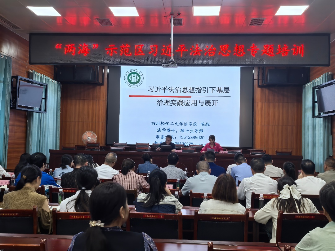 10月15日,我校法学院教师陈昶博士受邀参加宜宾市“两海”示范区2025年习近平法治思想专题培训会,为宜宾市“两海”示范区开展了题为“习近平法治思想指引下基层治理实践应用与展开”的专题讲座。公众代表、相关部门或单位、乡镇和村(社区)相关负责人或代表参加了本次培训。