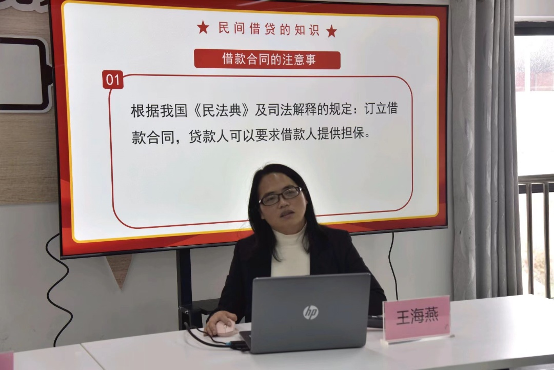 在城北感恩社区,王海燕博士依照我国“新型城镇化和乡村振兴战略”,结合越西县城北社区的特色发展和法治需求,为社区干部和工作人员重点讲解了“民间借贷知识、房产及租赁知识、婚姻法知识、老人权益以及继承问题、直播带货、赌博和酒驾问题”等六个方面的法律知识,给社区人员做了一场生动的法治宣讲。讲座之后,部分社区工作人员与王海燕博士进行了交流和咨询,并得到了专业的法律建议。