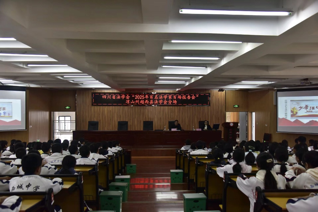10月21日,由四川省委组织部、省委宣传部、省委政法委、省教育厅、省司法厅、省法学会联合举办的《四川省2025年“百名法学家百场报告会”法治宣讲活动》在凉山州越西县开展。我校法学院教师王海燕博士作为2025年双百宣讲讲师团专家,在越西县西城中学开展以“法治进校园:法律守护未成年人健康成长”为主题的普法宣讲,为越西县西城中学300余名师生进行了有针对性的法治培训。