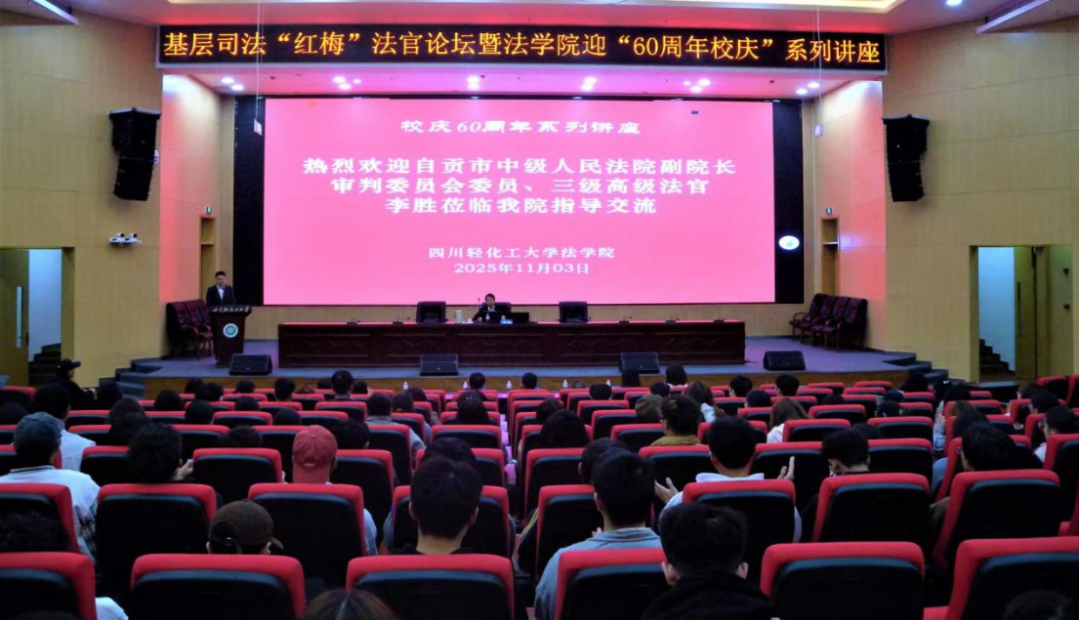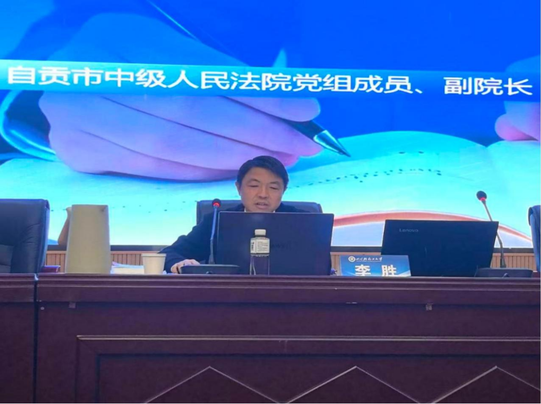 11月3日,自贡市中级人民法院党组成员、副院长,三级高级法官,四川省审判业务专家李胜莅临我校法学院,作“法律运用的实际逻辑与司法智慧”专题讲座,献礼学校60周年校庆。自贡市中级人民法院研究室主任陈耀森法官及法院工作人员一同出席,我校法学院党委书记邹国正、副院长(主持工作)熊德禄、副院长江凌燕及部分师生参加讲座。熊德禄主持讲座并致谢李胜副院长及自贡市中级人民法院长期以来对法学院工作的关心支持。