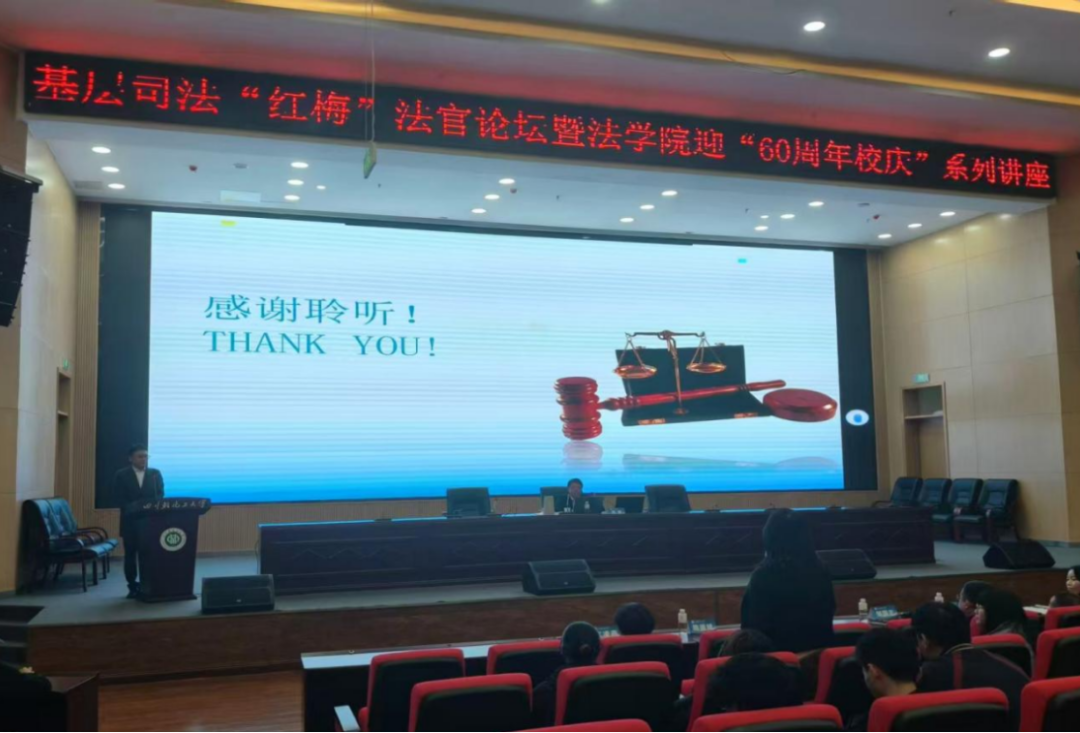此次讲座既是“校庆60周年”系列活动之一,也是自贡基层司法“红梅”法官论坛内容,讲座有效搭建起理论与实务的沟通桥梁,充分彰显了校地合作协同育人的积极成效。讲座结束后,法学院领导与自贡市中级人民法院嘉宾一行合影留念,并就未来进一步拓展合作领域、深化合作内容达成多项共识。