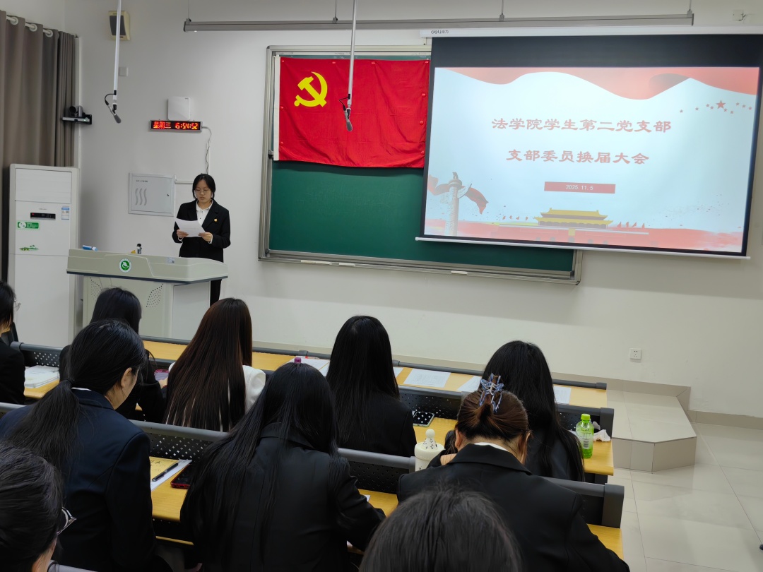为优化组织架构,保障党支部工作的持续创新与高效运转,11月5日,法学院学生第二党支部在宜宾校区A4-503教室举行党支部委员助理换届选举大会,张德鑫同志主持会议,党支部书记段炼与全体党员参会。