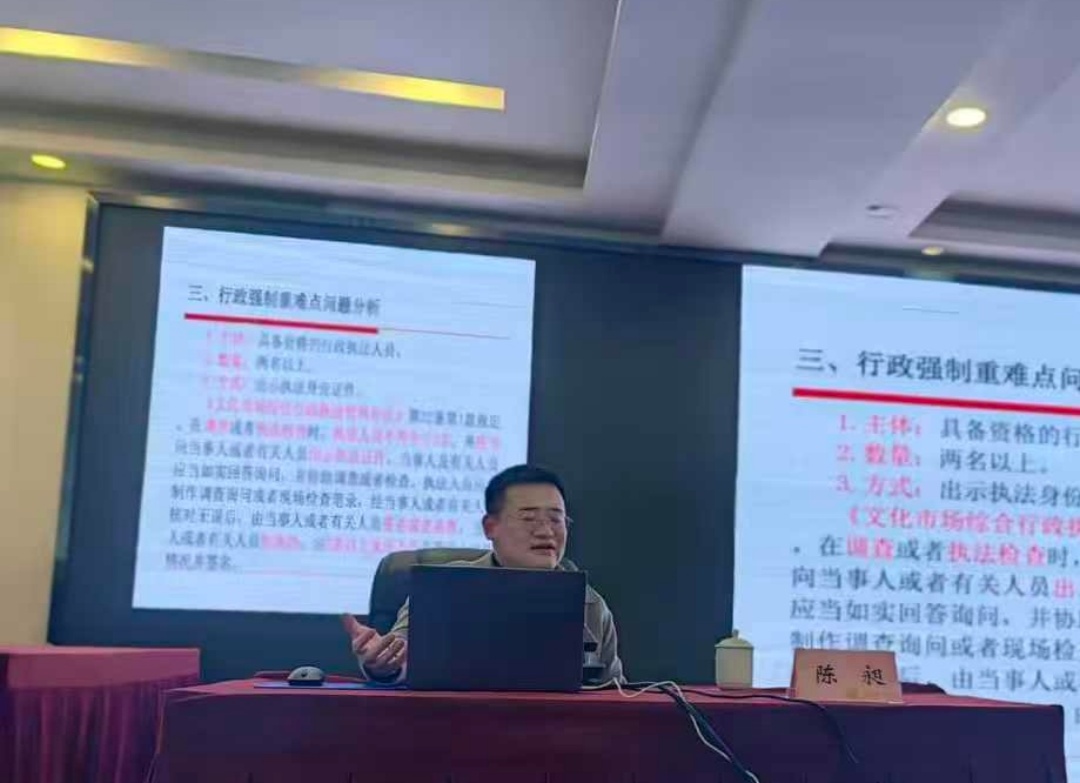 11月12日,我校法学院教师陈昶博士受邀为宜宾市兴文县开展题为《行政执法重难点问题实证分析》的专题授课。全县行政执法部门分管副局长、行政执法人员、法制审核人员100余人参加了本次培训。