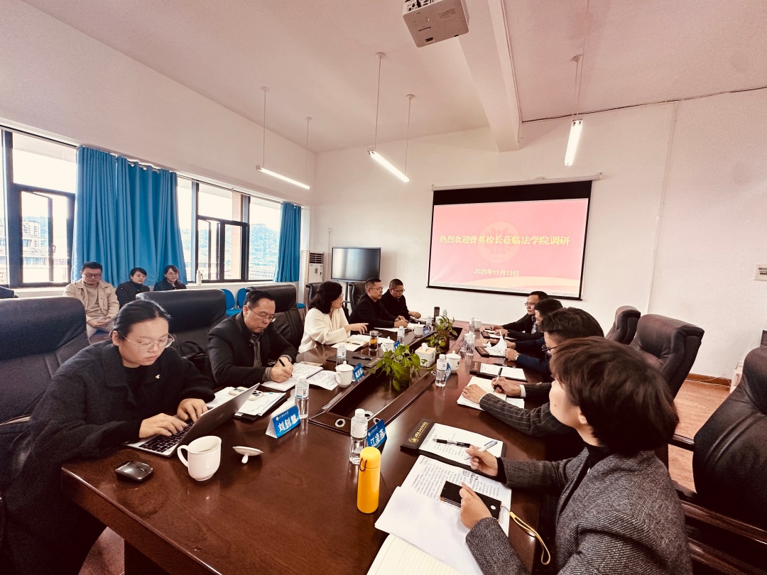11月13日下午,党委副书记、校长曾英莅临法学院开展专题调研,发展规划与学科建设处处长崔学军、研究生院院长蒋维东、教务处处长廖映华、党政办副主任刘钊慧陪同调研,法学院处科级干部、系(中心)主任、科研平台负责人、教授代表、青年骨干教师代表参会。会议由法学院党委书记邹国正主持。
