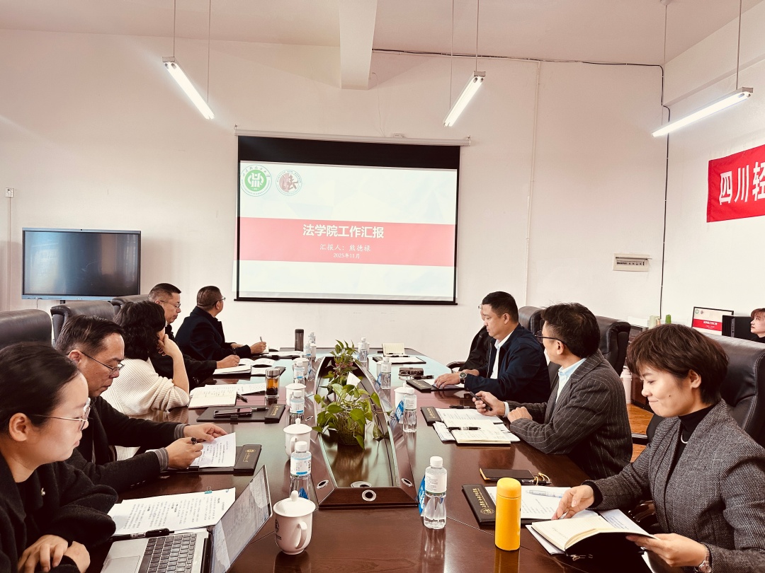 邹国正首先代表法学院对曾英校长莅院调研表示热烈欢迎,并对学校长期以来对法学院的关心指导表示感谢。副院长(主持工作)熊德禄向校领导进行了法学院工作汇报,详细介绍了法学院师资力量、学生情况、科研平台等基本情况,重点阐述了学院办学目标、办学定位、学科团队建设、办学思维与视野、学科建设的进步、校地合作的成果等特色亮点与创新,具体分析了学院办学面临的困难与挑战,提出了以“1257”发展思路为指引的法学院未来规划,并希望得到学校的鼎力支持。