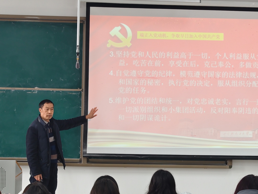 为强化入党积极分子思想淬炼,引导其树立正确的入党观念与价值取向,我院于11月27日上午8:20在我校李白河校区H1-202教室举办“端正入党动机,以实际行动争取早日加入中国共产党”主题教育讲座,为青年学子锚定理想航向。