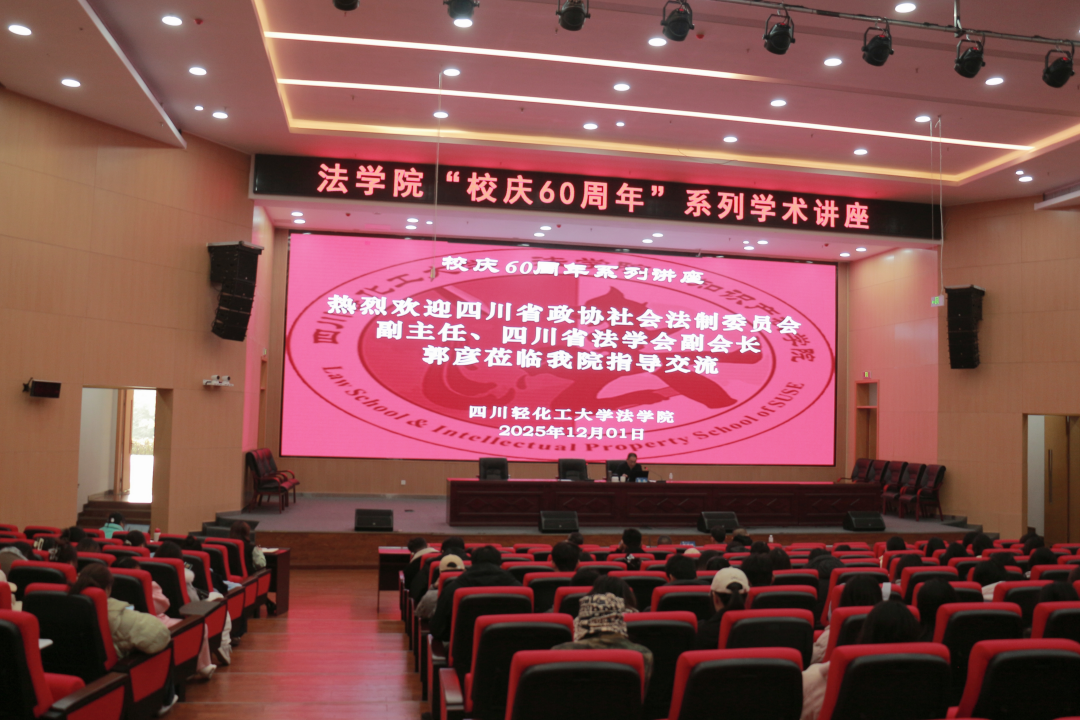 12月1日,法学院特邀四川省政协社会法制委员会副主任、四川省法学会副会长郭彦在我校宜宾校区学术报告厅为学院师生作题为《学思践悟习近平法治思想,坚持和发展人民司法制度》的专题讲座,献礼学校60周年校庆。我院副院长(主持工作)熊德禄主持讲座,邓中文教授、郭五林教授及部分师生代表共计200余人参加讲座。