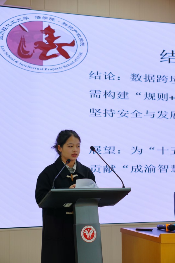 在专题研讨环节,我院教师王海燕博士受邀作《成渝地区数据确权案件的司法困境与破解路径——以深圳某科技公司诉重庆某科技公司案为例》主题发言,我院硕士研究生王佳怡作《成渝地区数字贸易涉外法治建设的困境与“十五五”规划适配路径研究》主题发言。嘉宾们围绕成渝金融检察的跨区划法律监督实践、长江上游生态修复的川渝实践、公平竞争审查刚性约束的区域协同、成渝地区数据确权案件中的司法困境与破解路径、地区人民法院人员内部交流机制的实践与完善等重要议题展开了跨学科、多维度的学术交流与思想碰撞。