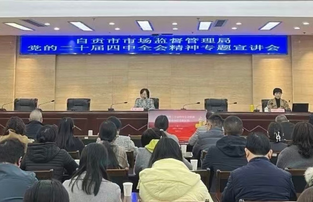 12月2日,我院副院长江凌燕副教授应邀为自贡市市场监督管理局开展党的二十届四中全会精神专题宣讲。局机关及下属事业单位全体干部职工集中参与学习。