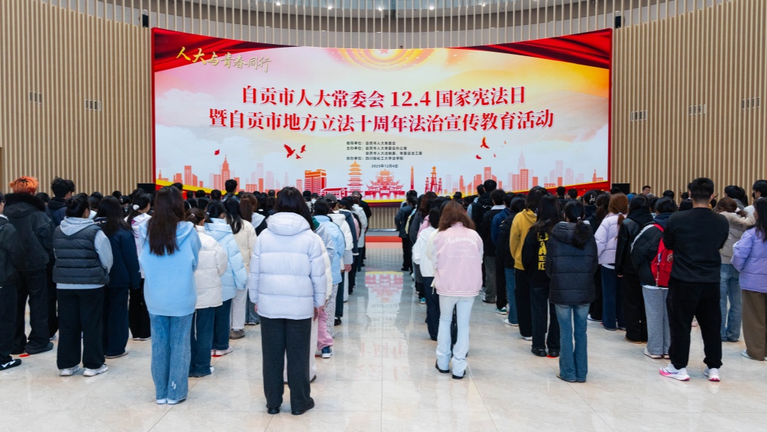 12月4日,在我国第十二个国家宪法日暨自贡市获得地方立法权十周年之际,“学习宣传贯彻习近平法治思想,推动宪法深入人心”主题法治宣传教育活动在我校李白河校区正式启动。本次活动由自贡市人大常委会指导,自贡市人大常委会办公室、市人大法制委、常委会法工委主办,四川轻化工大学法学院协办。自贡市委副书记、政法委书记朱云,市人大常委会副主任吴兰、龚焕楷、刘晓彬,副市长聂海波,市人民检察院代理检察长黄文等领导出席活动。自贡市人大常委会秘书长朱柱主持启动仪式。