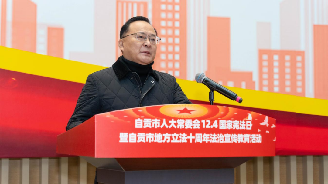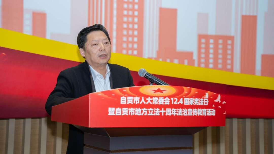 自贡市人大常委会主任谭豹发表讲话,充分肯定我校在地方立法参与和法治教育中发挥的作用,并对青年学生寄予殷切期望。他强调,要以习近平法治思想为引领,高扬宪法旗帜,夯实法治根基,为谱写中国式现代化自贡新篇章提供坚实的法治保障。