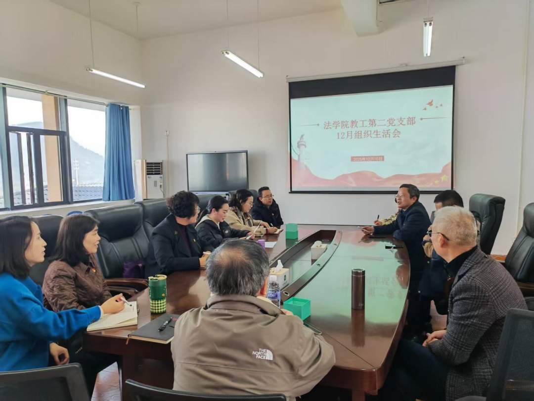 12月10日14:30,法学院教工第二党支部在宜宾校区A1-525会议室开展了十二月主题党日活动,会议由教工第二党支部书记郭五林同志主持。