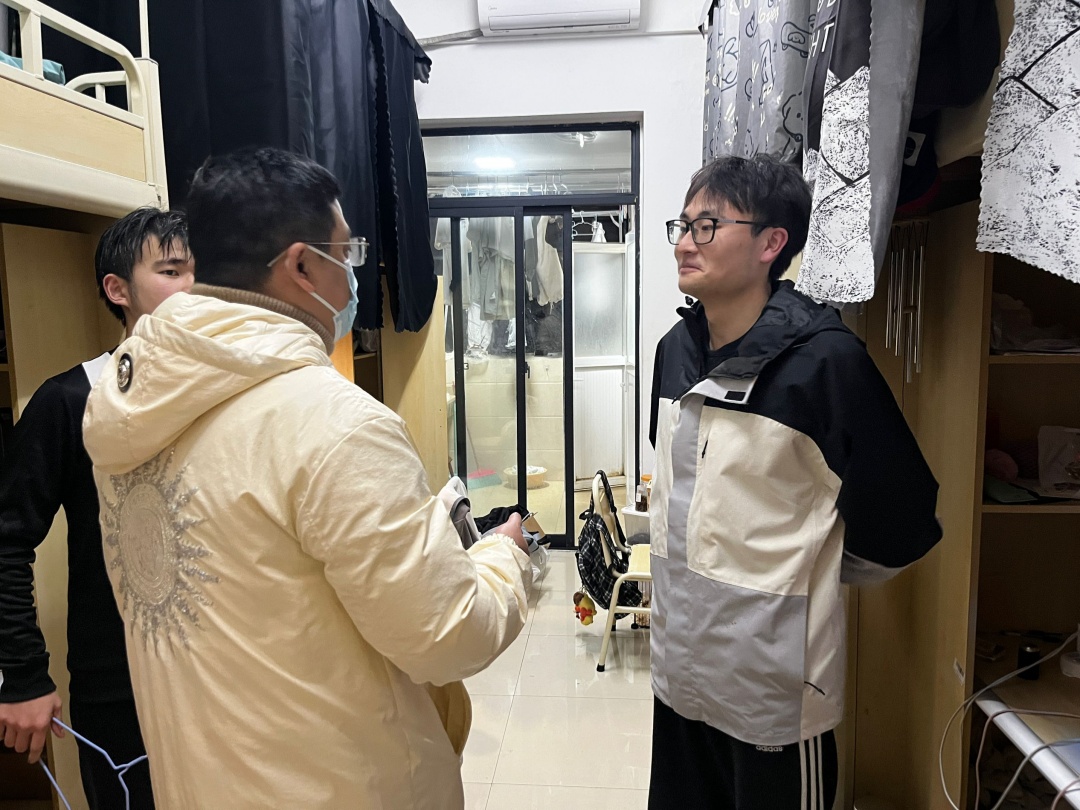 走访过程中,邹国正在宜宾校区寝室与同学们亲切交谈,聚焦寝室安全与卫生管理两大重点,为同学们敲响安全警钟。他仔细检查了寝室内电器使用规范等情况,强调严禁私拉乱接电线,严禁使用大功率违禁电器,叮嘱大家时刻绷紧安全弦,杜绝安全隐患。在卫生方面,邹国正指出,整洁的寝室环境是身心健康的基础,呼吁同学们养成良好的卫生习惯,定期打扫寝室卫生,共同营造干净舒适、文明和谐的住宿氛围。