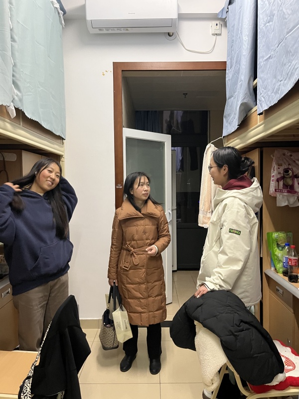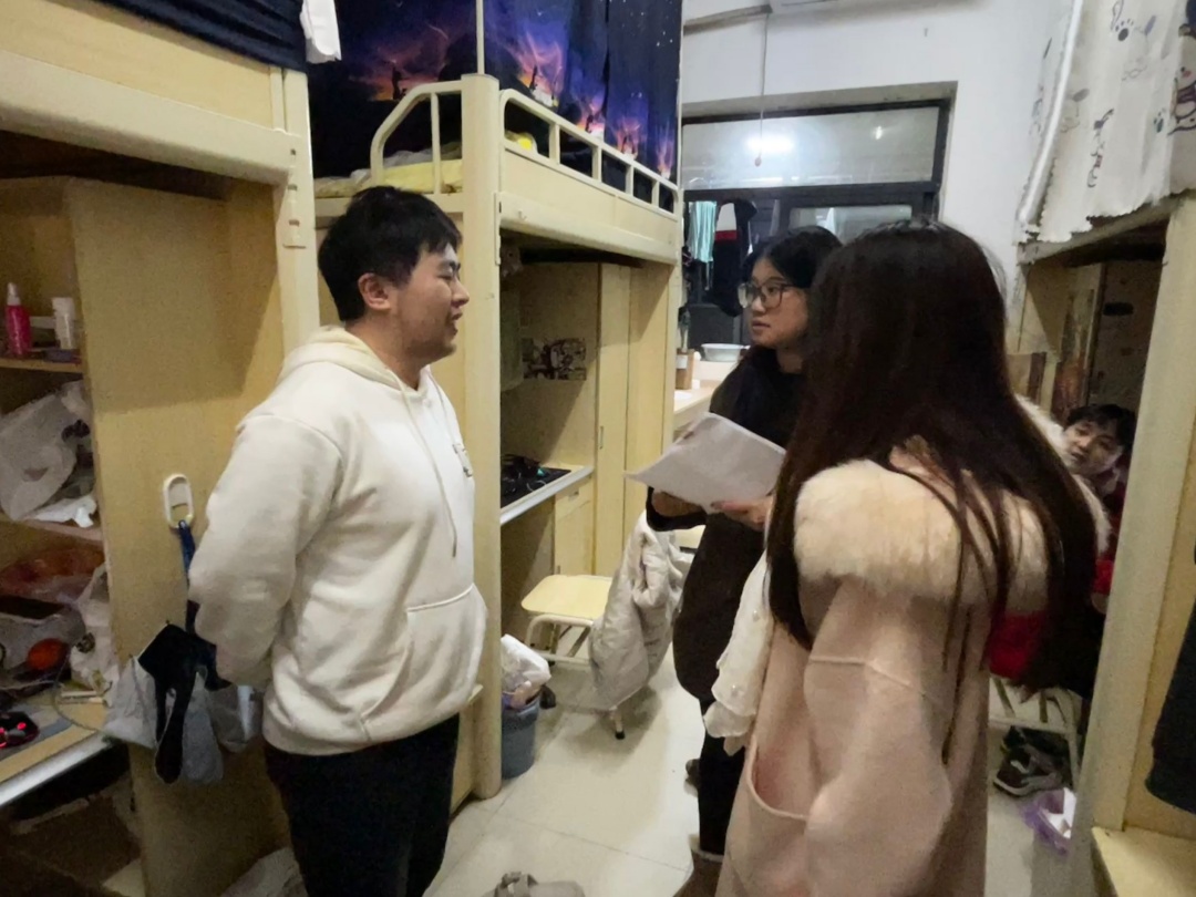 杨红霞在李白河校区寝室详细询问大家的期末复习进度与生活近况。她叮嘱同学们,期末复习任务繁重,要合理规划时间、调整作息节奏,以饱满的精神状态迎接考试;同时提醒大家,冬季室内外温差大,务必注意开窗通风,保持寝室空气流通,降低呼吸道疾病感染风险,及时增添衣物,做好防寒保暖。针对年末诈骗案件高发的特点,杨红霞着重强调了防范电信网络诈骗的重要性,告诫同学们提高警惕,不轻信陌生来电和短信,不随意泄露个人信息,守护好自身的财产安全。