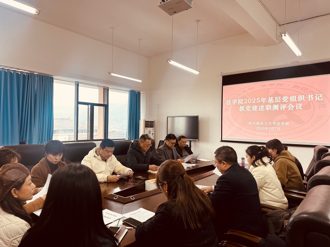 1月7日下午,法学院党委在宜宾校区A1-525会议室召开2025年度党支部书记抓党建工作述职评议会。学院党委委员、纪委委员以及各师生党支部书记及党员代表共20余人参会,会议由法学院党委书记邹国正主持,学校专职巡察组副组长谭辉出席会议并做总结发言。