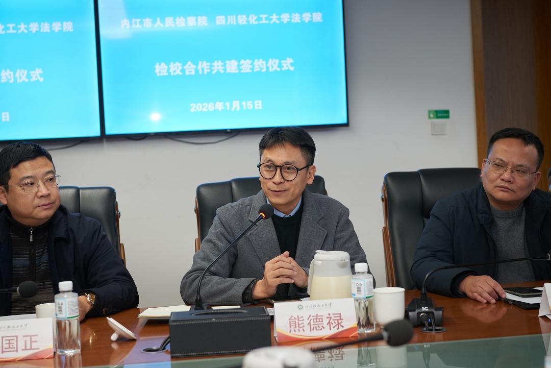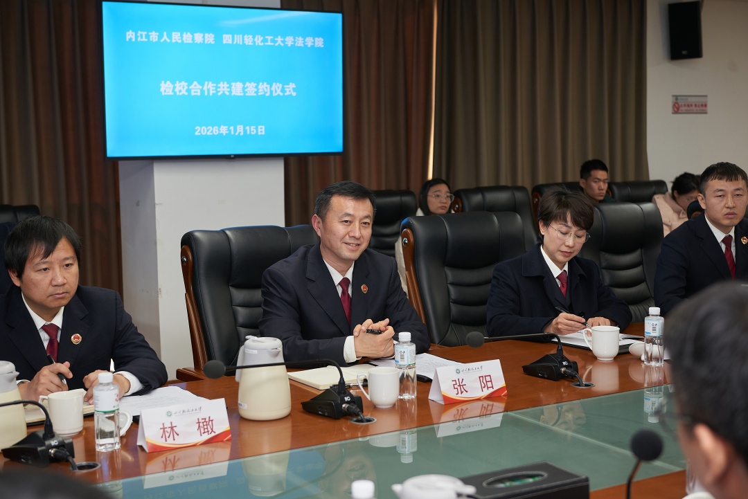 张阳介绍了内江市人民检察院理论研究基本情况。他表示,四川轻化工大学法学院是川南地区享有盛誉的法学教育与研究重镇,培养了一大批基础知识扎实,有较高理论研究能力和教学能力的应用型、复合型、创新型专业人才。近年来,内江市检察机关立足检察职能,将理论研究作为提升司法办案质效的重要抓手。此次与法学院开展检校合作共建,是落实上级检察机关要求的具体举措,也是结合自身实际的迫切需要。