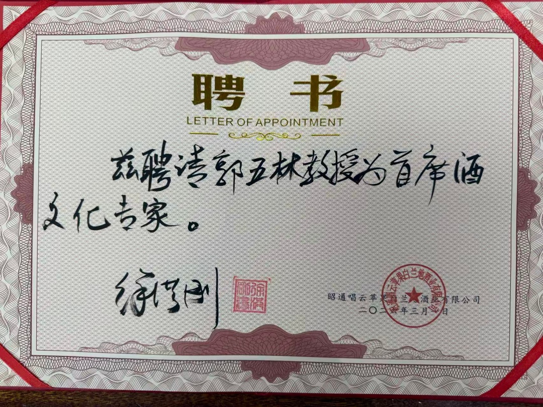 3月1日,全国著名的见义勇为英雄徐洪刚同志到四川轻化工大学中国白酒学院调研酒文化,并参观了学校法学院教授郭五林的四川省郭五林大师工作室,以及食品与酿酒工程学院中试基地。徐洪刚专门为郭五林授予聘书,聘请郭五林为昭通唱云苹果白兰地酒业首席酒文化专家。