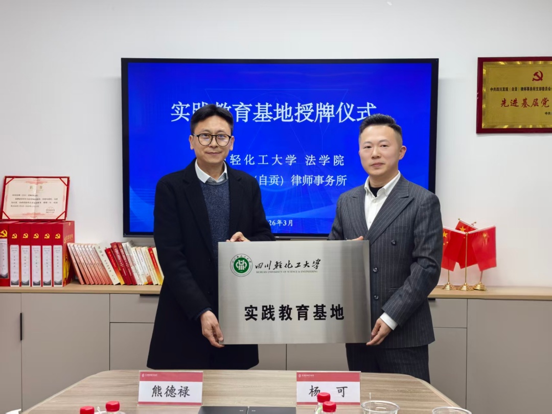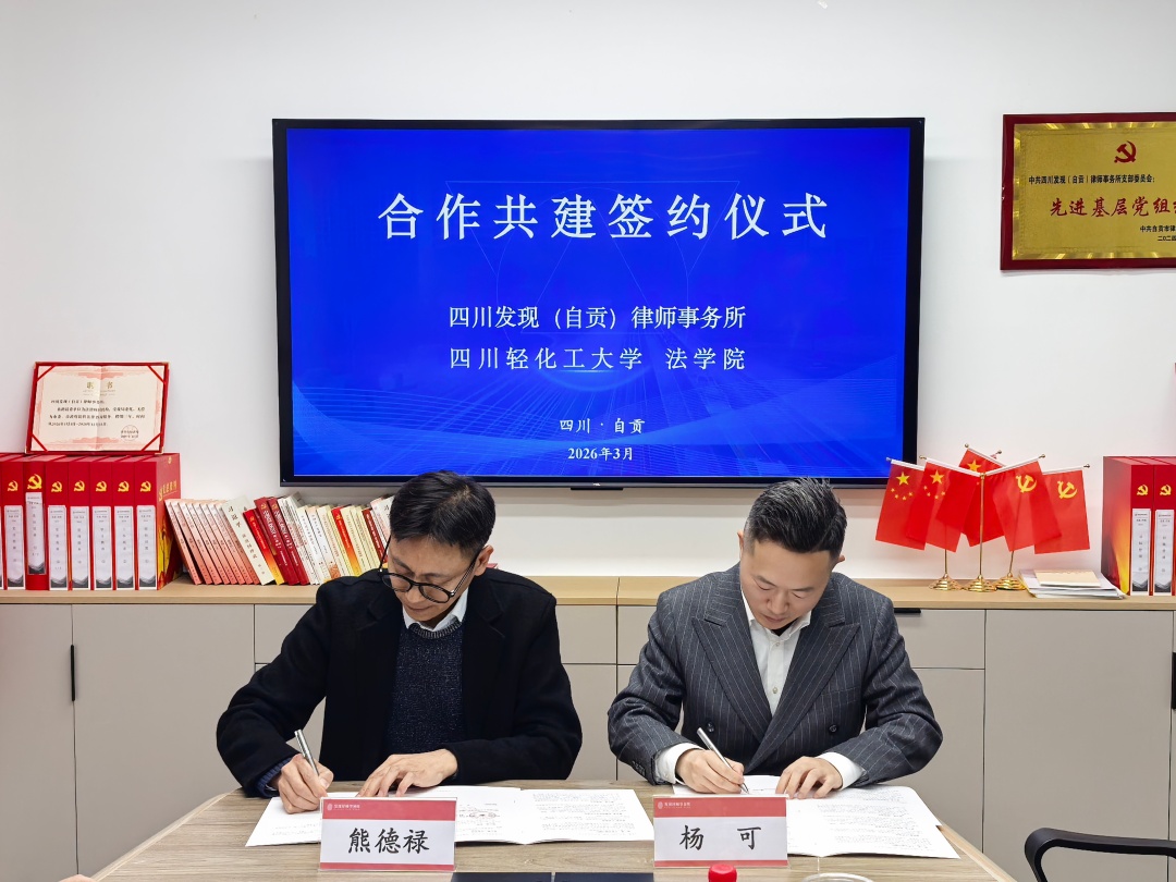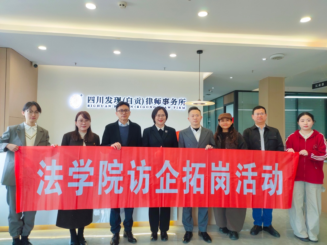 为进一步深化法学教育与法律实务融合,精准对接行业人才需求,拓宽学生实习就业渠道,3月20日下午,我校法学院副院长(主持工作)熊德禄、法学系主任曾凡珂、法学院校友会秘书长童静、法学系教师赵紫雄一行,前往四川发现(自贡)律师事务所开展访企拓岗活动暨合作共建签约仪式。律所主任杨可,律所执行主任、我院校友郭珊,以及在该所实习的我院2025届本科毕业生李政军、研究生钟睿霖参加了此次活动。