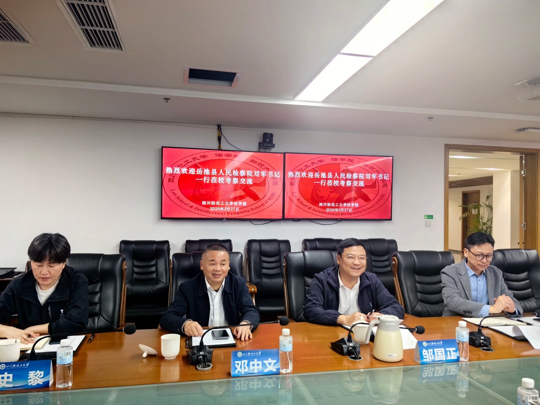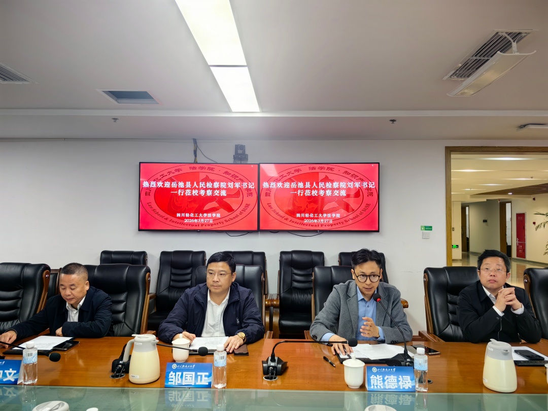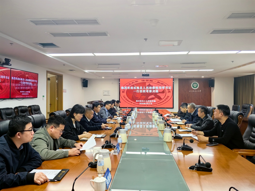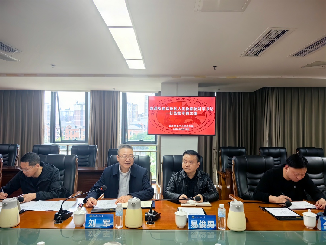3月27日上午,法学院与岳池县人民检察院在宜宾校区综合楼424会议室举行检校合作座谈。岳池县人民检察院党组书记、检察长刘军,党组成员、副检察长易俊男,检委会专职委员周朝海,第三检察部主任余治霆,政治部书记员李宇,法学院党委书记邹国正,副院长(主持工作)熊德禄,法学院邓中文教授、郭五林教授、史黎副教授、陈昶副教授、李育林博士、李昱辰博士,法学系副主任傅一苹、党政办严涛出席座谈会。