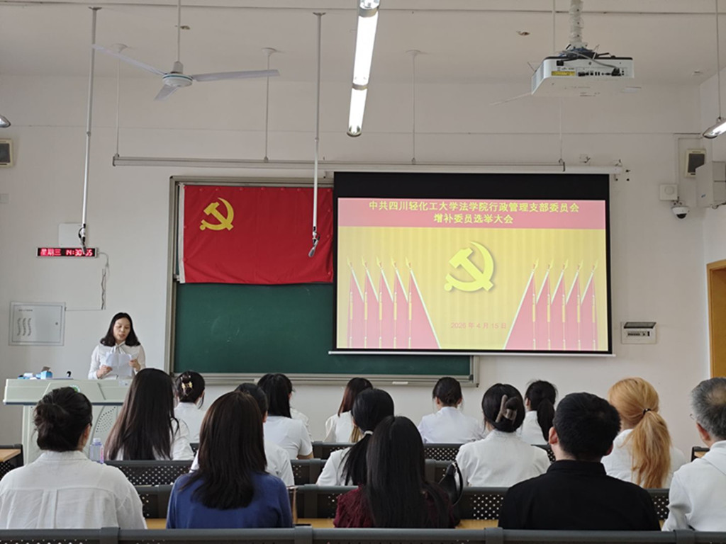 4月15日,法学院行政管理系党支部在宜宾校区A4-503教室召开四月党组织生活会暨支委增补选举大会,党支部全体在校党员参加会议。